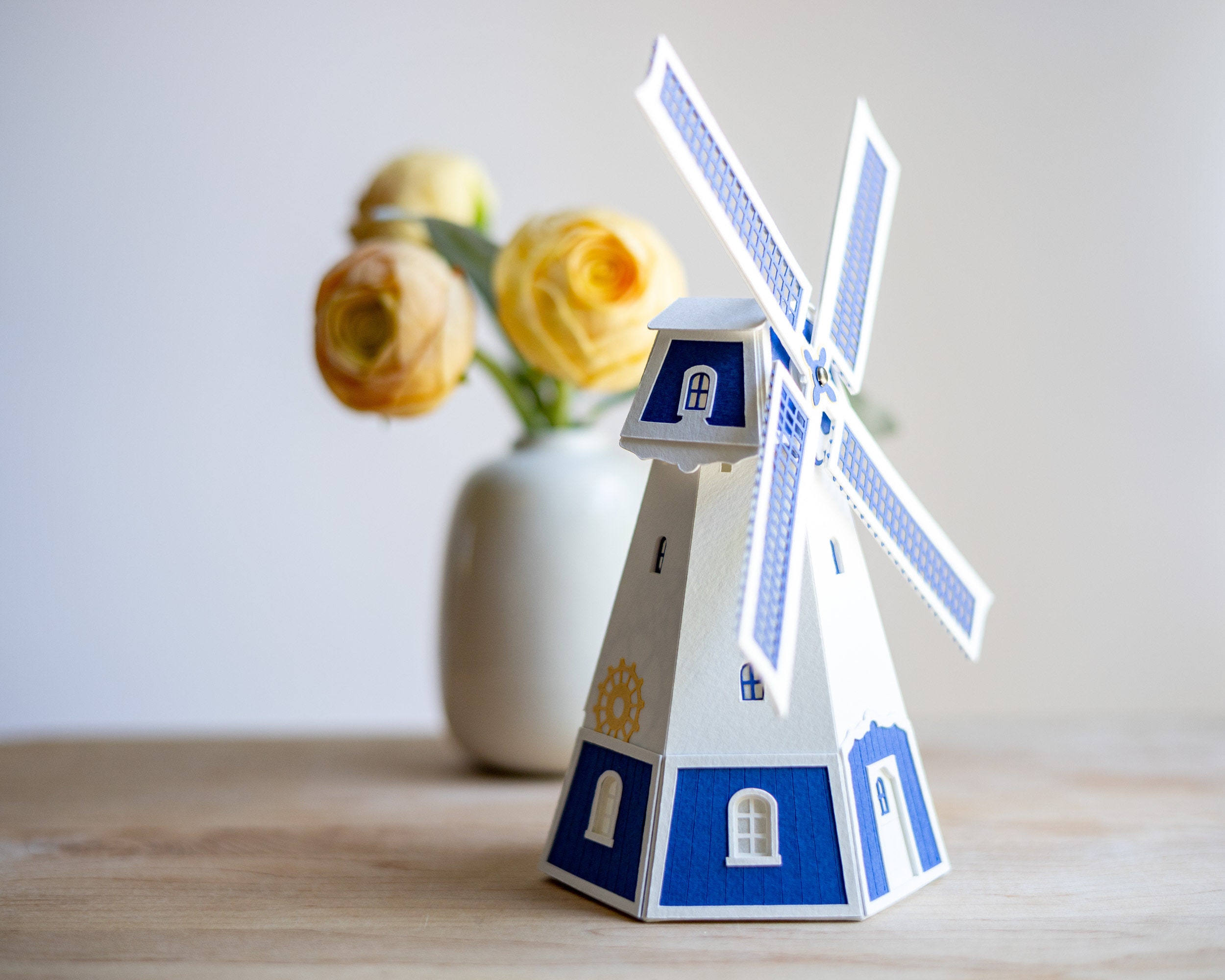 Dutch Gift Windmill In Delft Blue Tea Light Luminary Etsy Uk